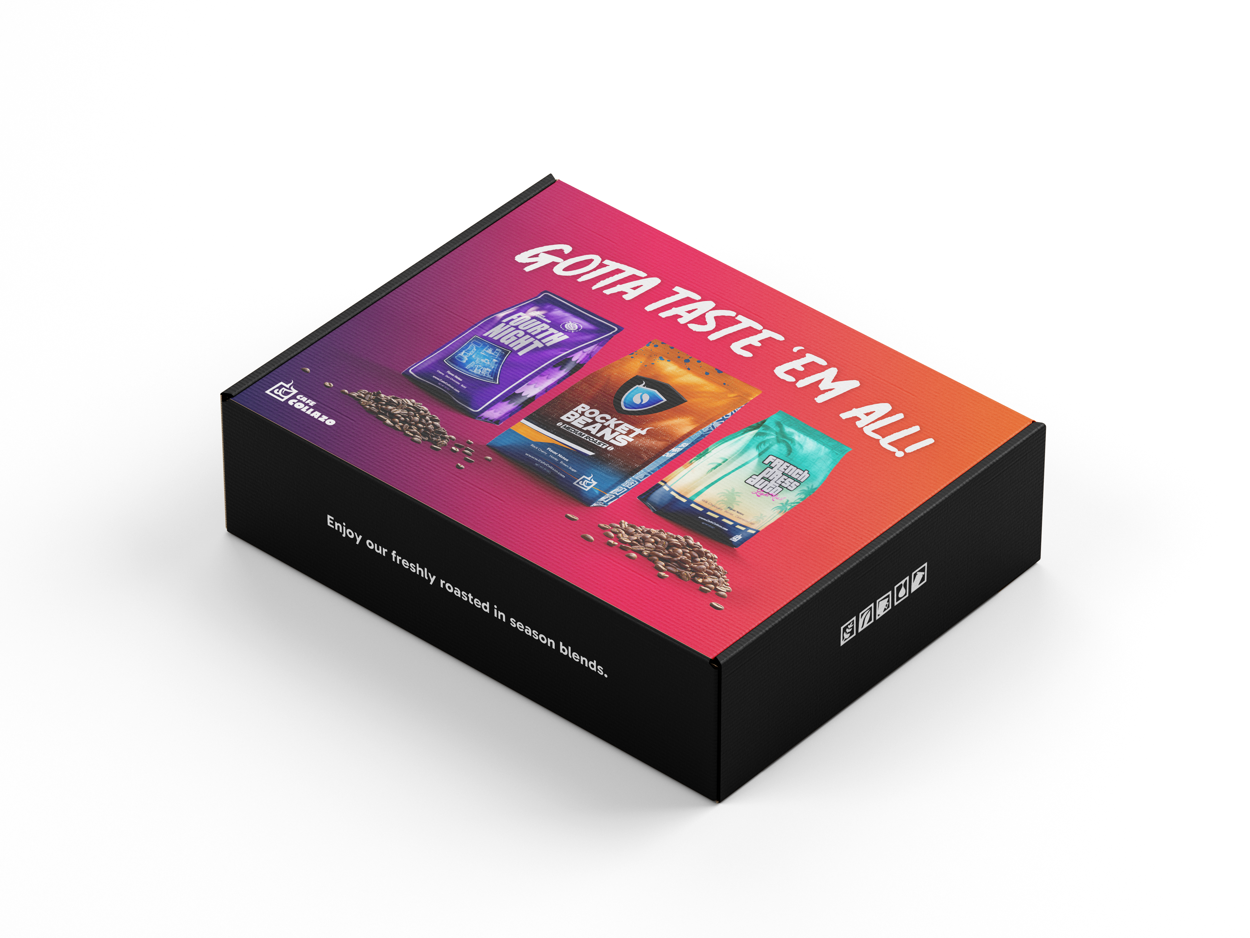 Try all 3 of our freshly roasted 12oz bags of whole bean coffee delivered to your doorstep and get a bag free!